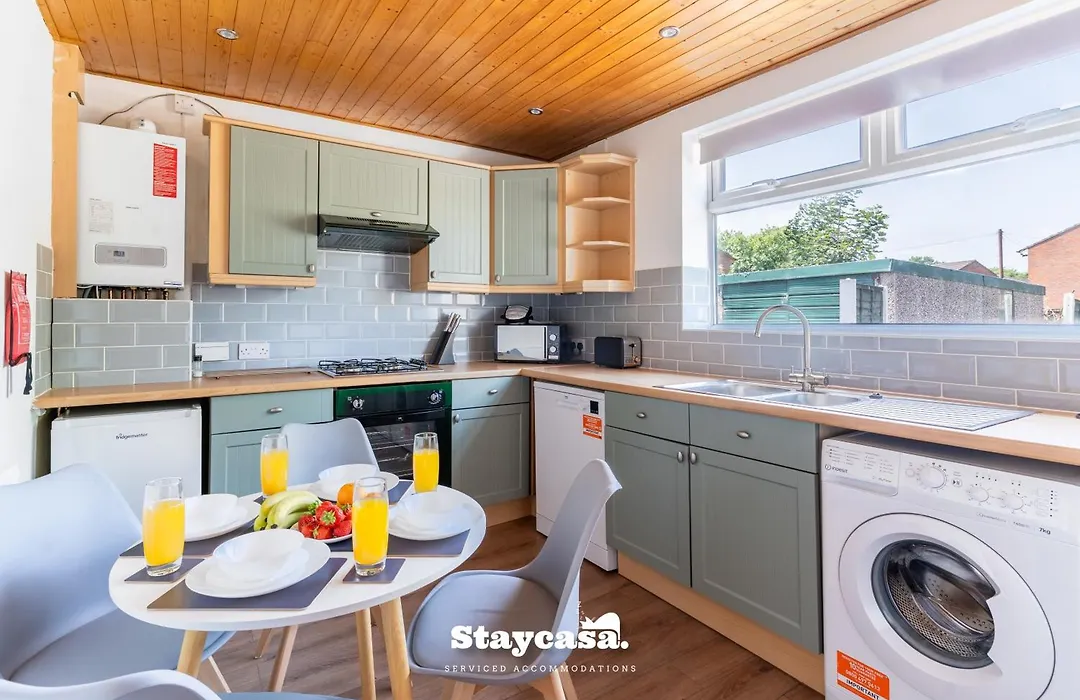 Een magnetron, koffie- en theevoorzieningen, een koelkast zijn aanwezig in een complete keuken ter plaatse. Gasten worden uitgenodigd om te dineren in Shrek's Pizza, gelegen op 600 meter afstand. Dankzij Sale Road/Shevington Gardens bushalte, momenten van de 1-badkamer villa, kunnen gasten gemakkelijk Manchester verkennen.